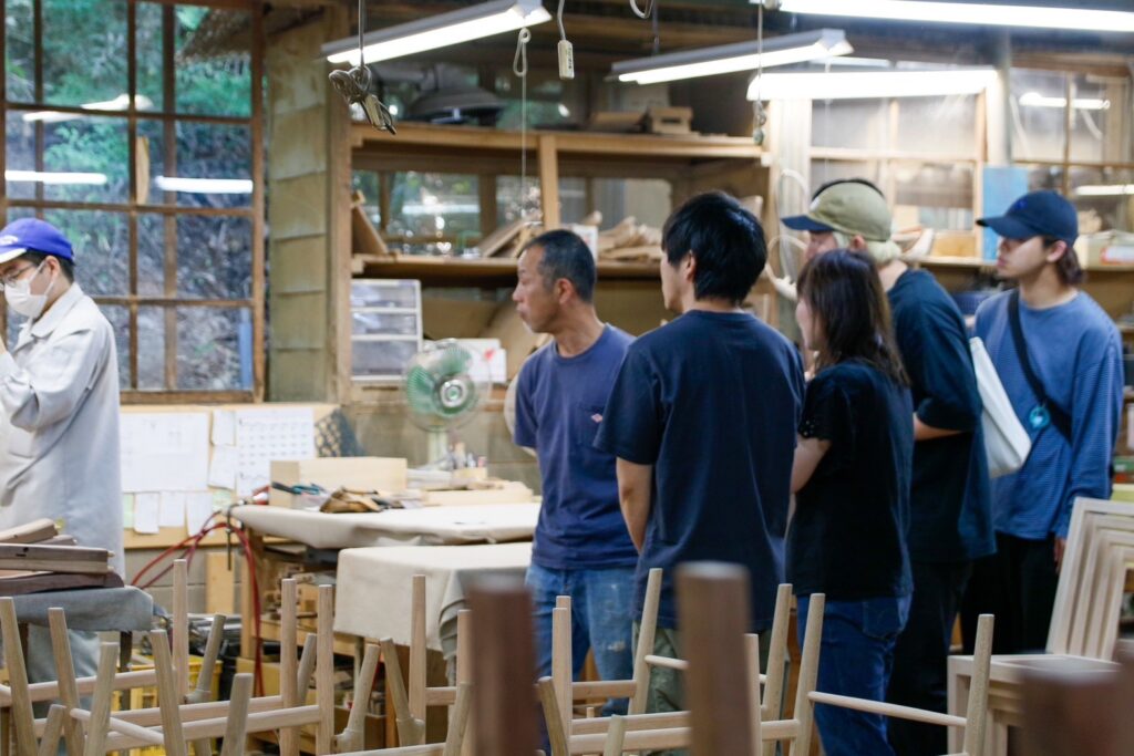 普段ではなかなか見ることができない椅子やテーブルの製造の様子や